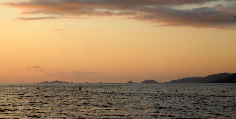 Mer et plages de Corse du sud : coucher de soleil sur les îles Sanguinaires