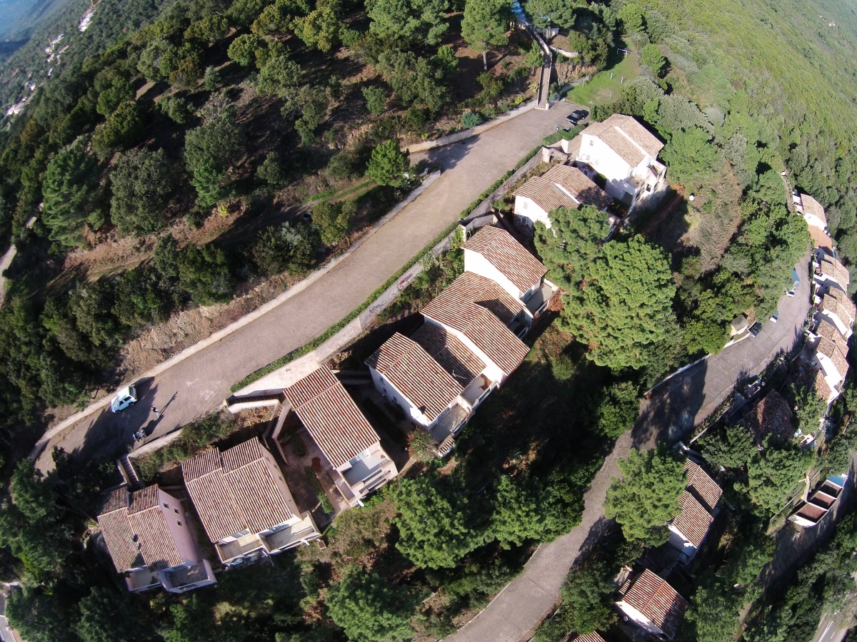 Ces logements sont situés sur une colline dominant la mer, dans un sous-bois ombragé.